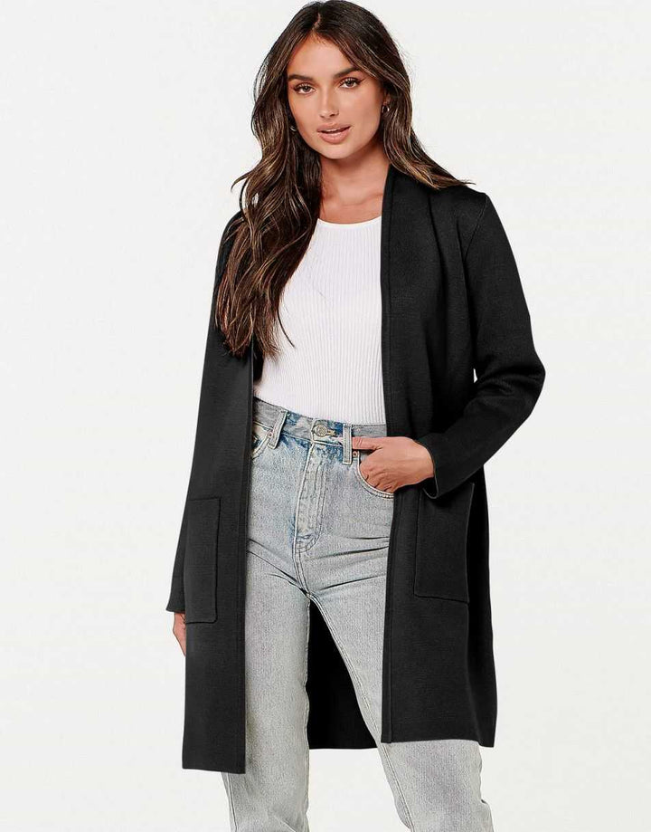 - Features - Open front, pockets, knit fabric provides flexibility, Not lined.