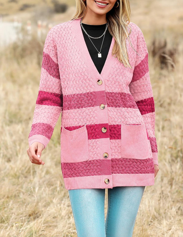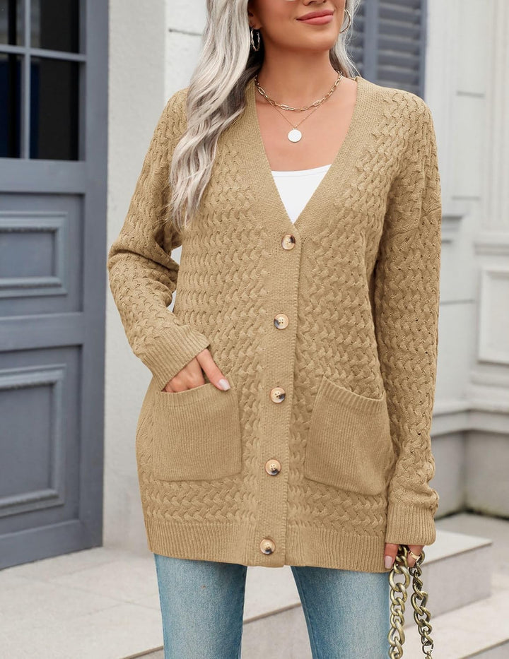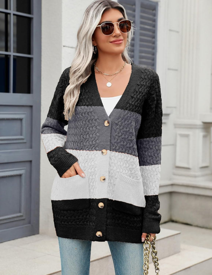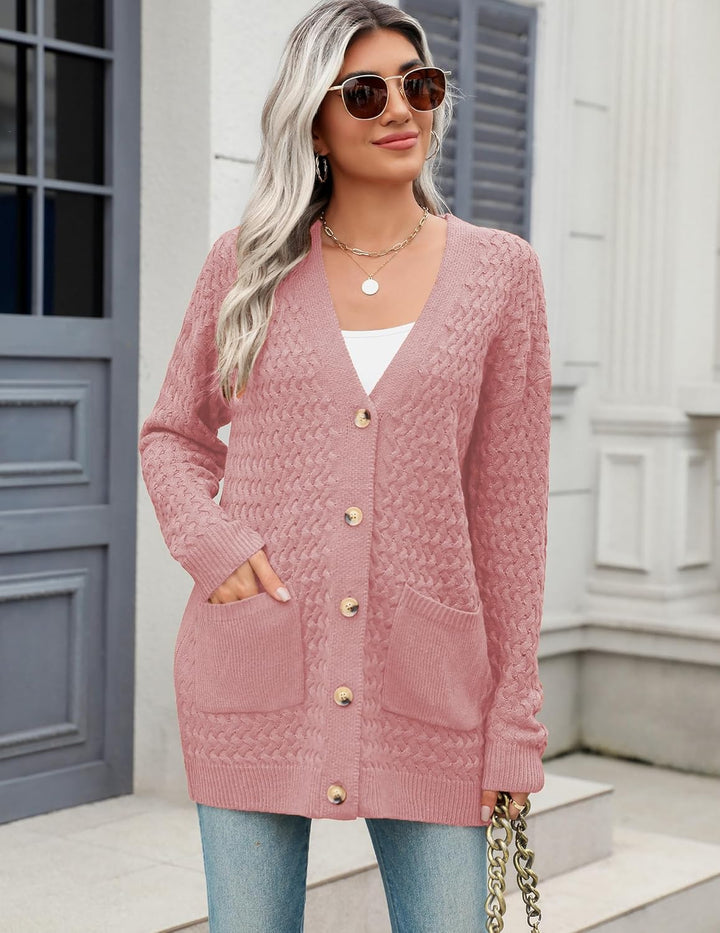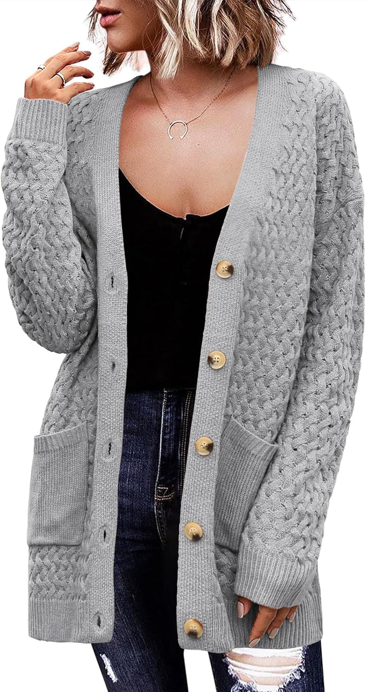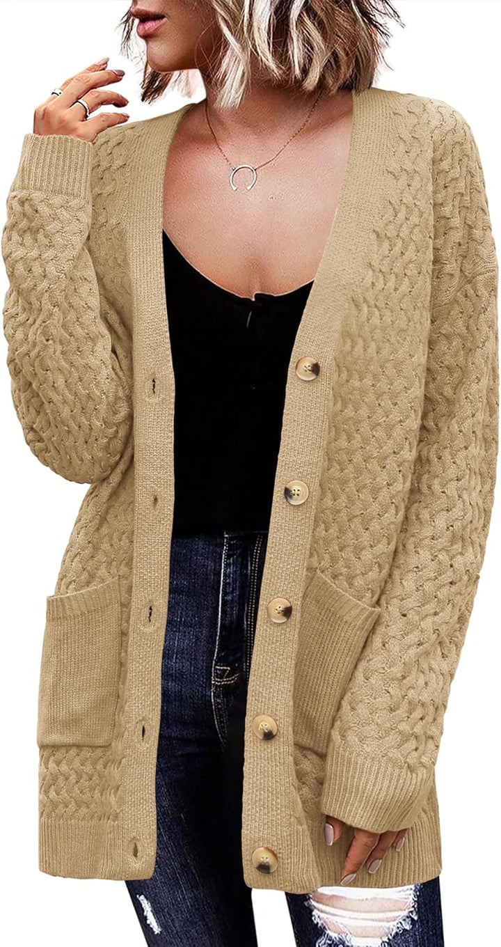 Zeagoo Womens 2024 Long Sleeve Chunky Cable Knit Fall Cardigans Sweaters Button Down Open Front Outerwear with Pockets